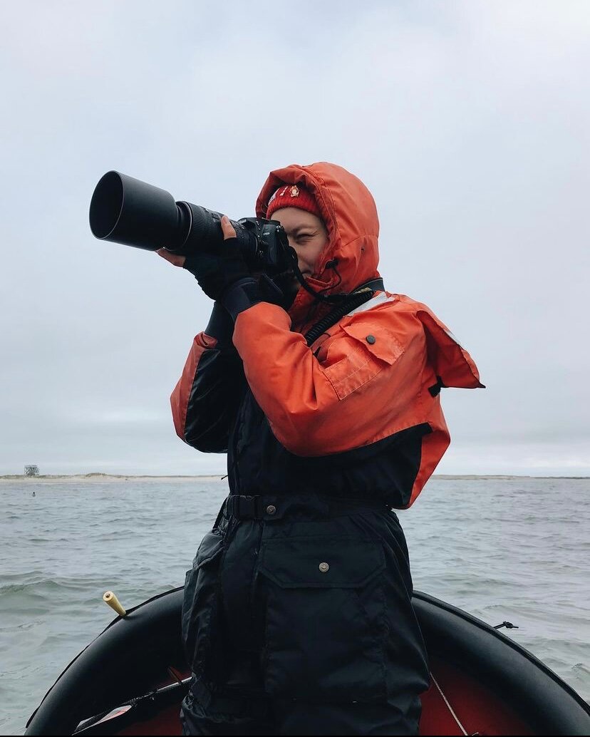 Все на лодке заняты своей работой: фотоидентификацией, чаще всего занимаюсь я. У тебя в руках фотоаппарат, который весит 2-3 кг и ты его все время держишь и фотографируешь. Надо сделать очень качественные фото и не уронить его в море. Далее необходимо брать биопсию, стрелять в китов, собирать этот материал, записывать данные.